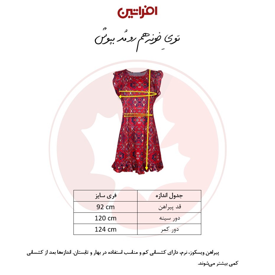 دارای بند تنظیم کننده اندازه کمر در طرفین پیراهن. برای راهنمایی بیشتر مشتریان گرامی جدول سایز در آلبوم عکس کالا موجود است.