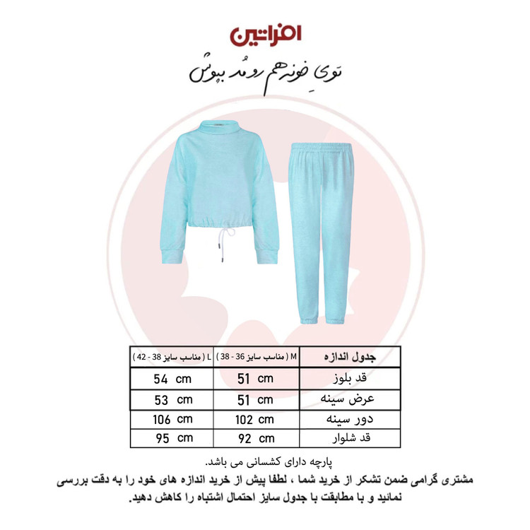جزئیات: بلوز پایین گتردار، مدل یقه شل و شلوار دمپاکش میباشد.