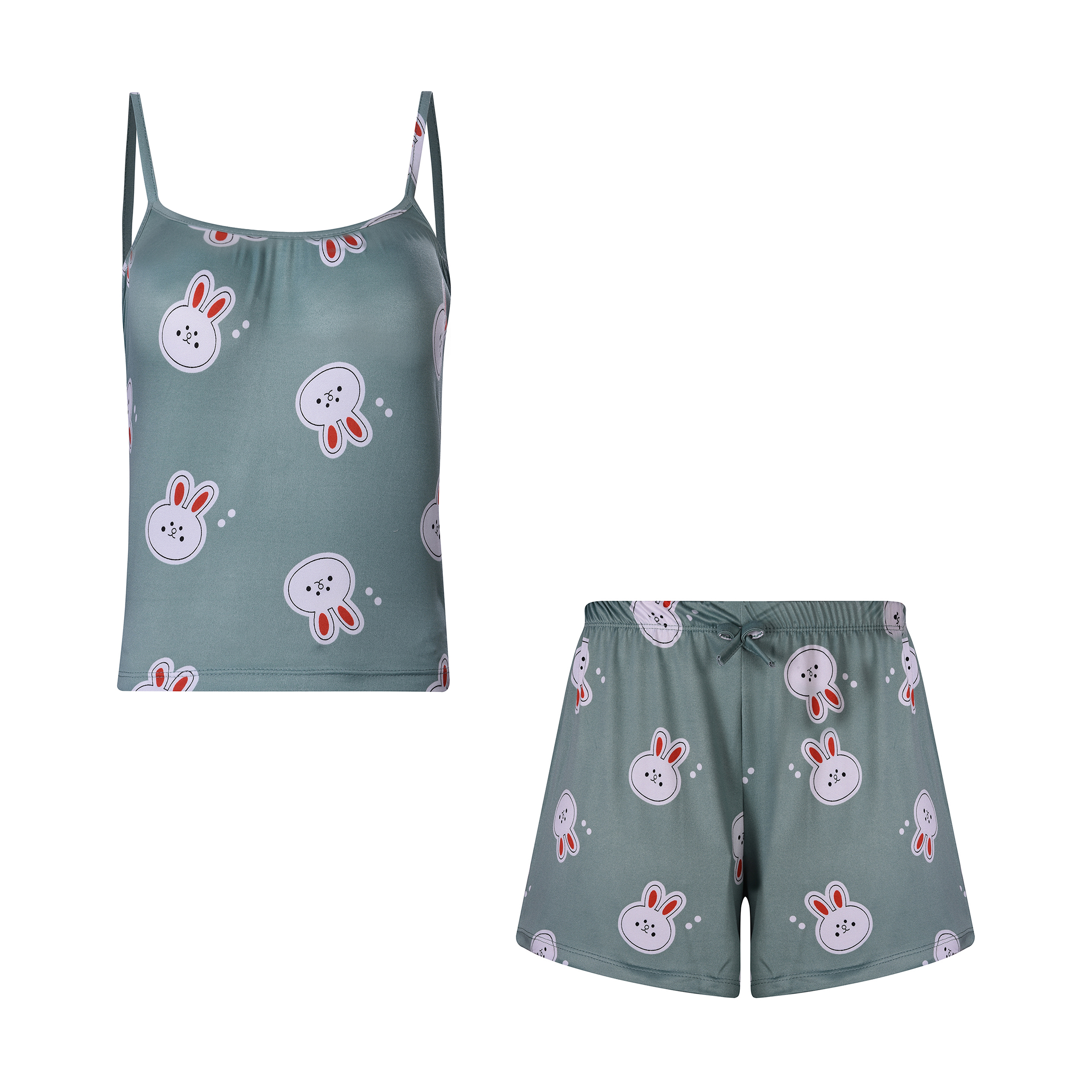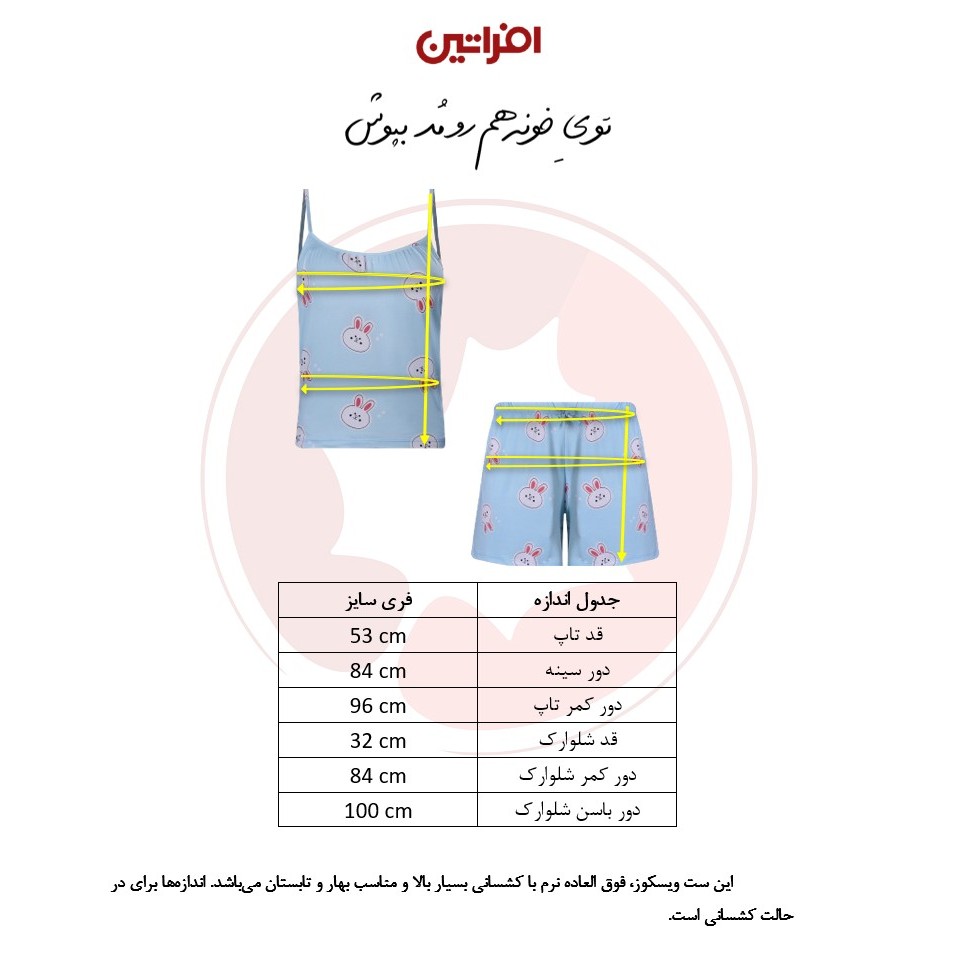 این ست لباس خواب زنانه با طراحی فانتزی و رنگ ملایم، انتخابی ایدهآل برای داشتن استایلی راحت و بانمک در خانه است. پارچهی این ست از ویسکوز تهیه شده که نرمی فوقالعاده و کشسانی بسیار بالایی دارد. تاپ آن دارای بندهای نازک و پشت یقهی کشدار است که به خوبی روی بدن مینشیند و آزادی حرکت را حفظ میکند.