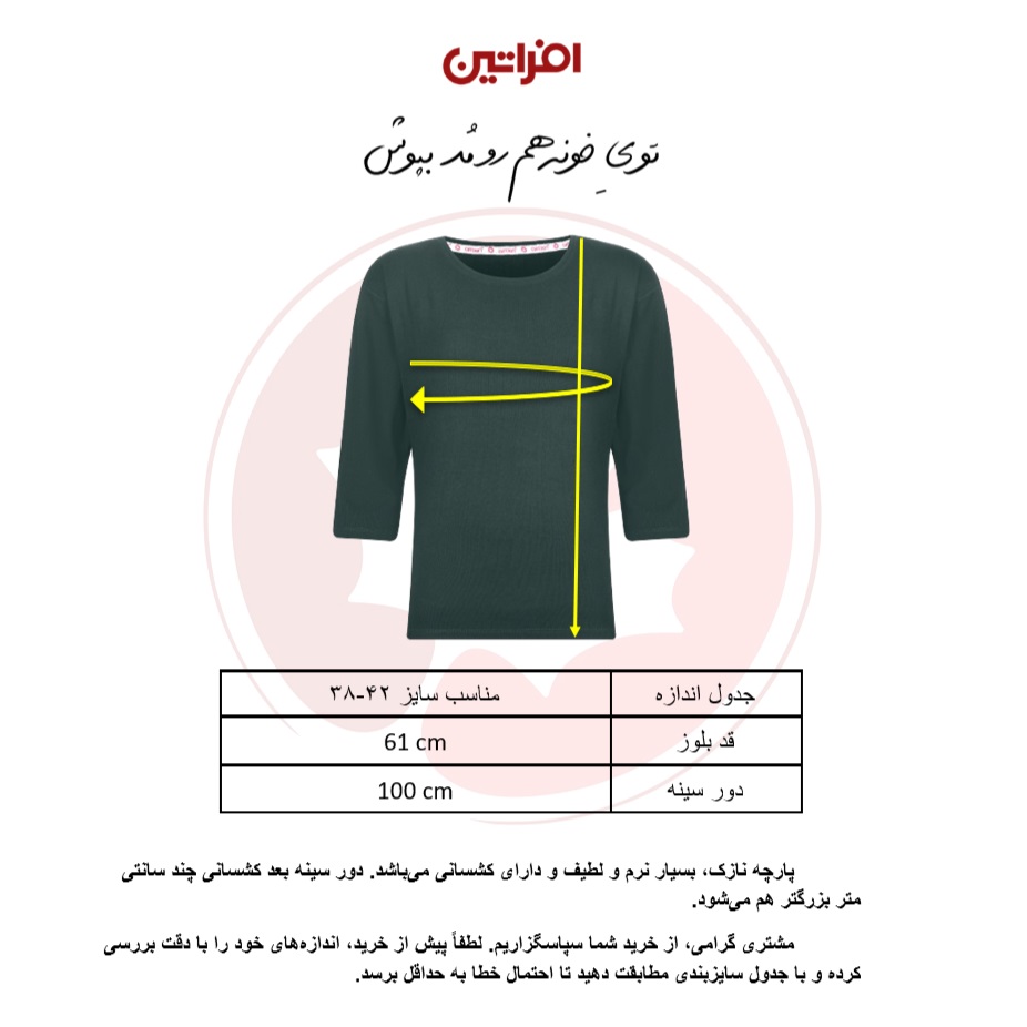 برای راهنمایی بیشتر مشتریان گرامی جدول سایز در آلبوم عکس کالا موجود است.